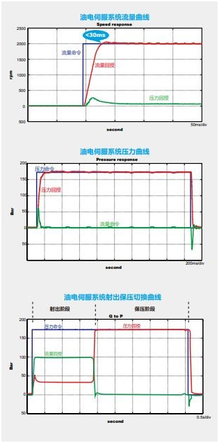 油電伺服系統架構 伺服驅動器從射出成型機控制器獲得壓力及流量命令后,與實際壓力和轉速回授進行PID 演算,計算出合適的控制量來驅動伺服電機與油泵,因此控制系統響應快、重復精度高。