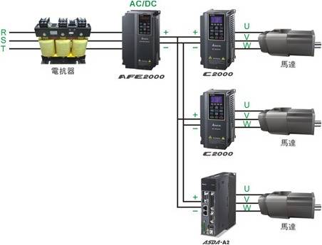 支持并接多個(gè)DC bus之交流驅(qū)動器,如下圖: