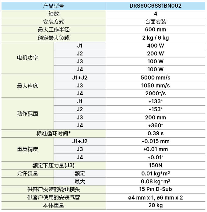 * 負載 1 kg 時,上下移動 25 mm,水平移動 300 mm,往返所需的時間。測試環境溫度 25 oC, 環境相對濕度 45% ~ 65% RH