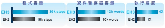 DVP-E系列高階主機,為因應更復雜的應用,程序及數據緩存器容量加大。